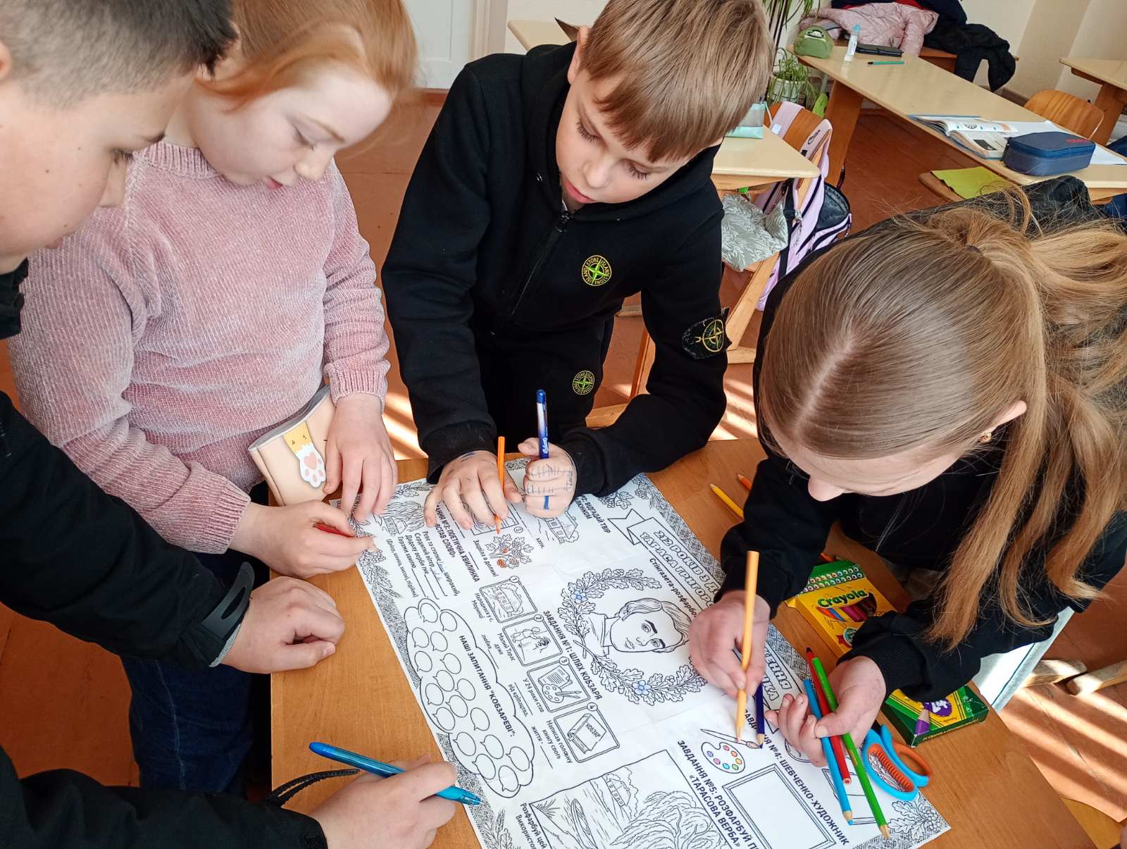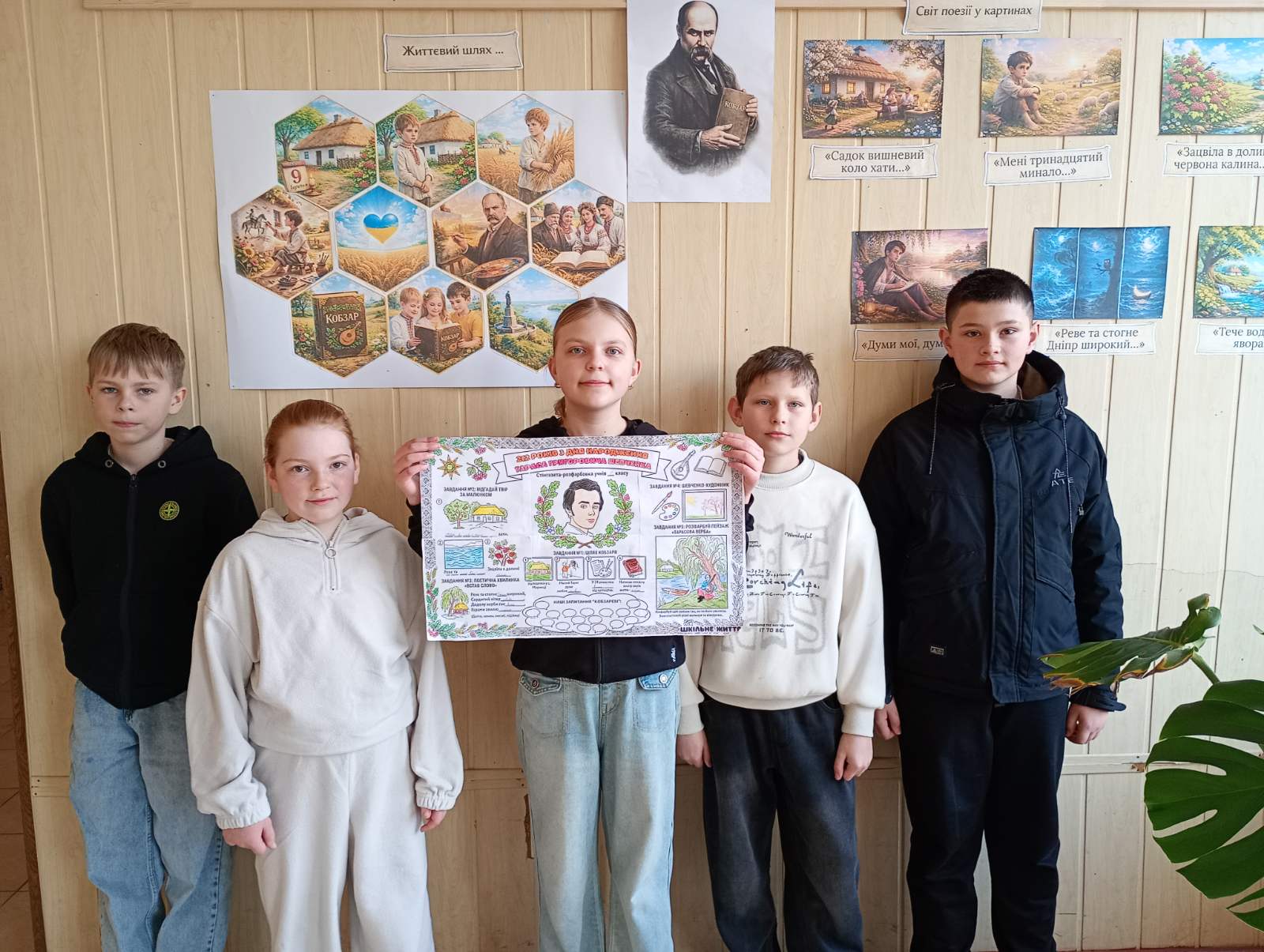 Учні 5 класу виготовили стінгазету "212 років з дня народження Тараса Григоровича Шевченка".